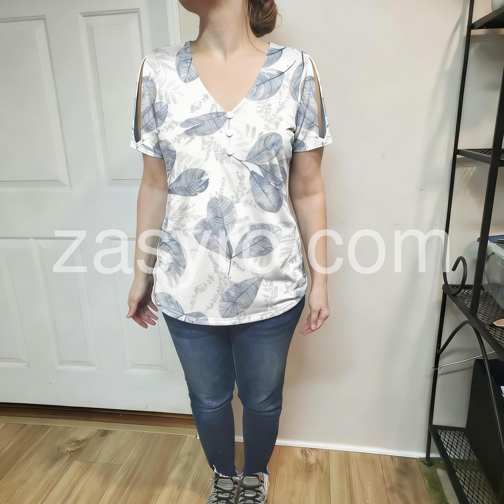 • Neckline: V-neck