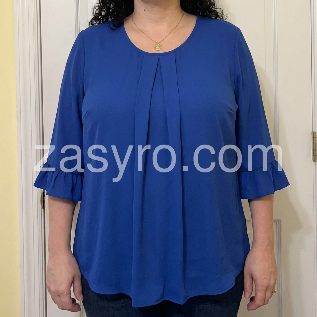 Elevate your everyday style with this gorgeous royal blue blouse. It features delicate front pleats and flirty ruffled cuffs, adding a touch of elegance to your look.