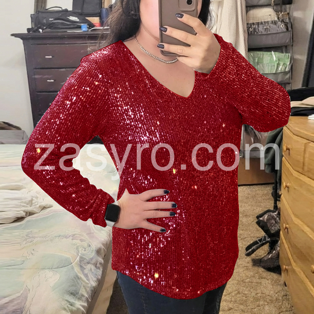 Gorgeous V-Neck Sequined Top