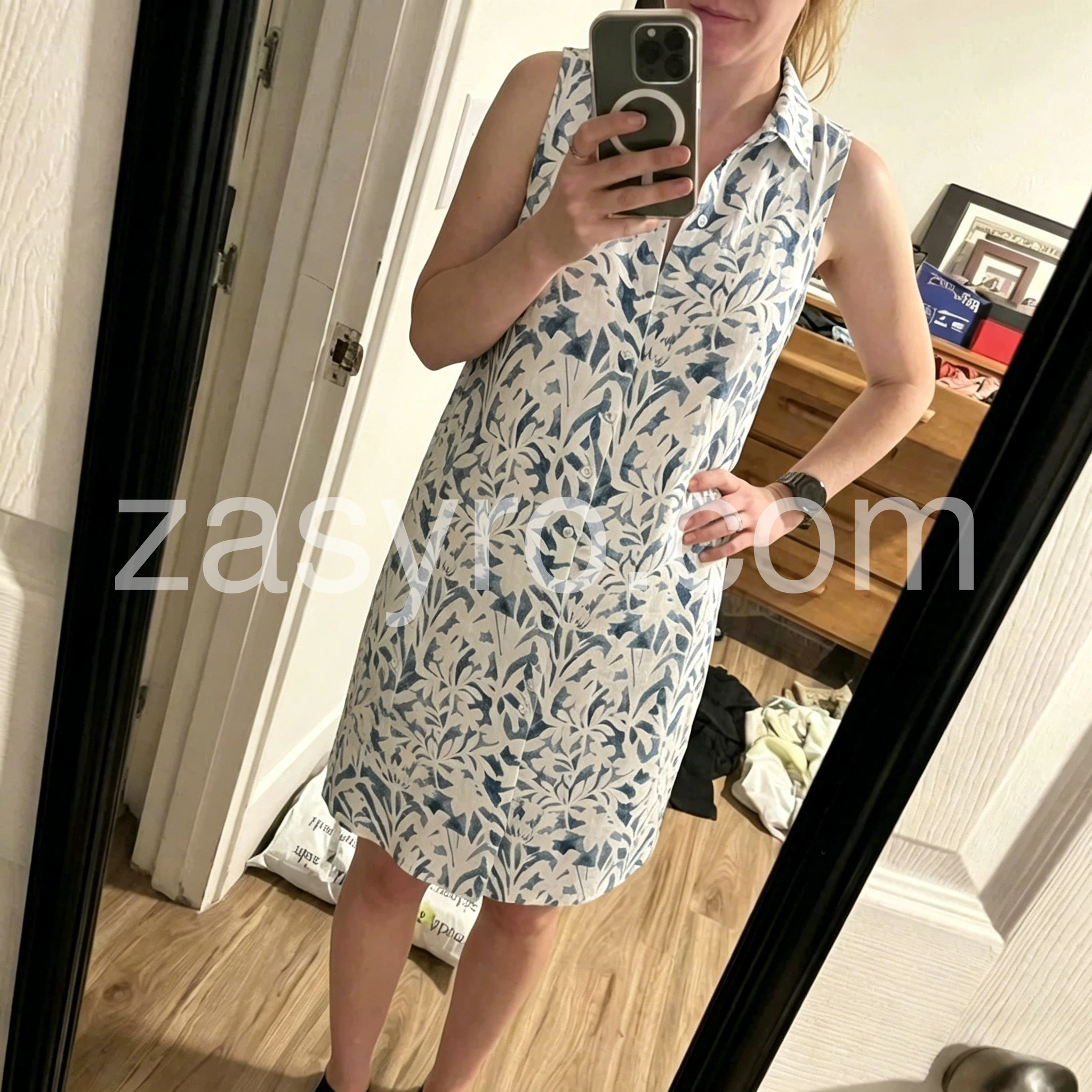 Crafted for women tired of stiff, unflattering shirt dresses, this style checks every box. The watercolor botanical print adds soft, feminine charm, while the sleeveless design keeps you cool in warm weather—no more sticky, overheated arms.
