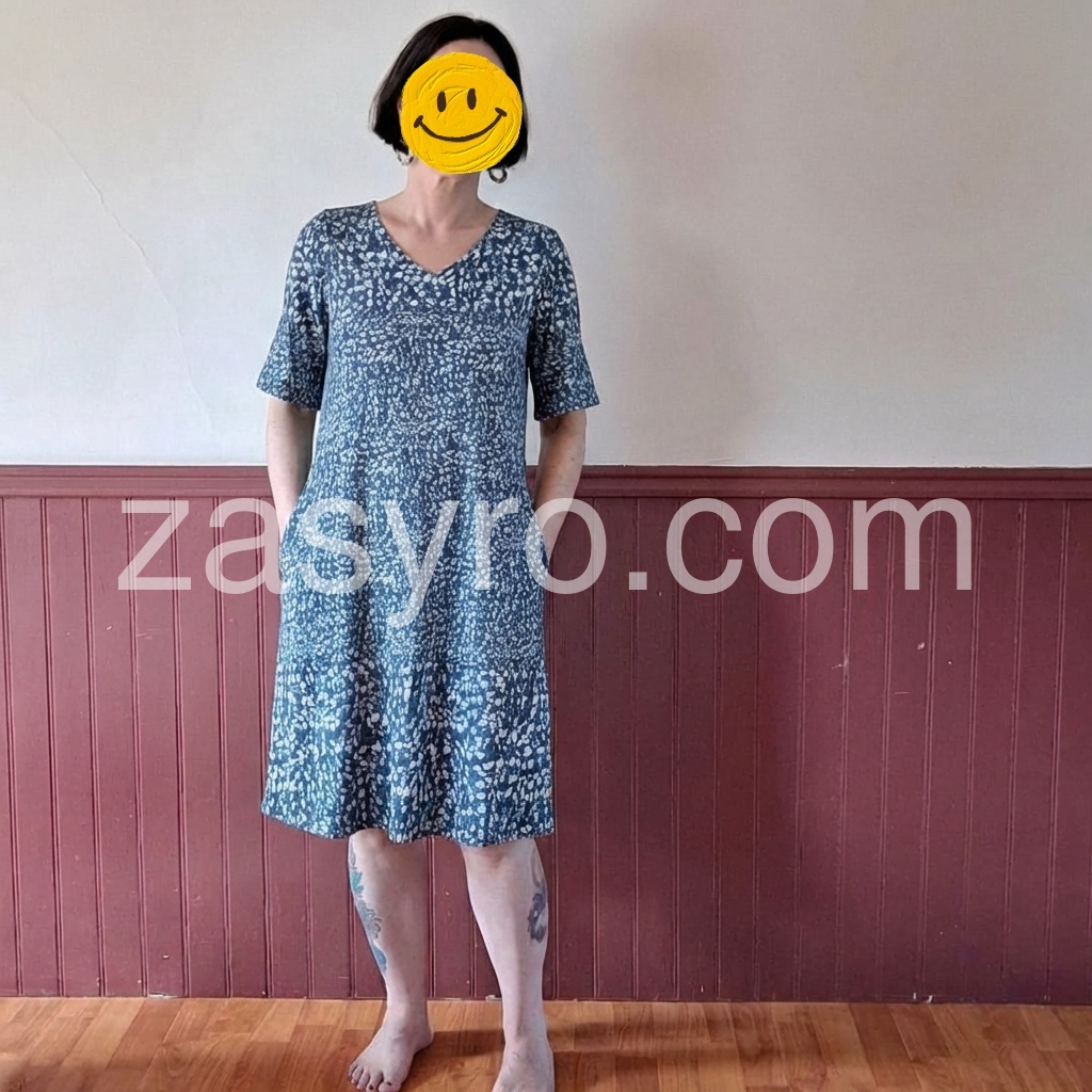 As an older woman I struggle to find dresses that are stylish but still modest. This dress is a winner. The v-neck is tasteful and the skirt length is very appropriate.