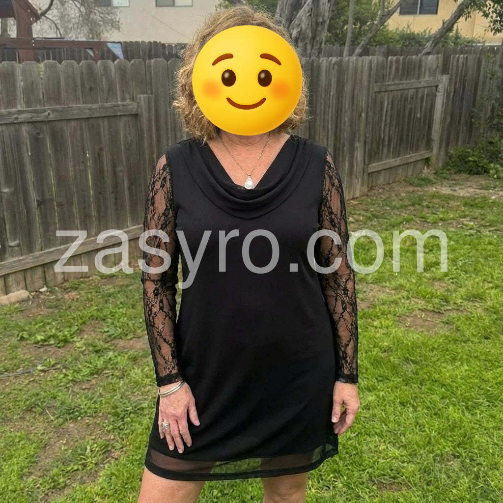 This dress is effortlessly chic and flattering. The lace sleeves add a delicate, feminine touch, while the solid black fabric keeps it versatile for both day and evening events. The length and drape are comfortable, and pairing with a gold clutch elevates the look nicely. Quality feels premium, and the fit is true to size. Fast shipping and friendly customer service completed a smooth shopping experience. Highly recommended for a polished, classic style.
