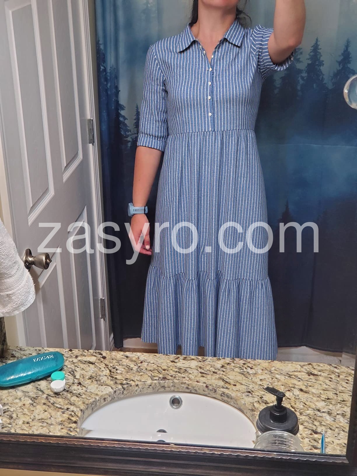 Breezy Striped Print 3/4 Sleeve Maxi Dress